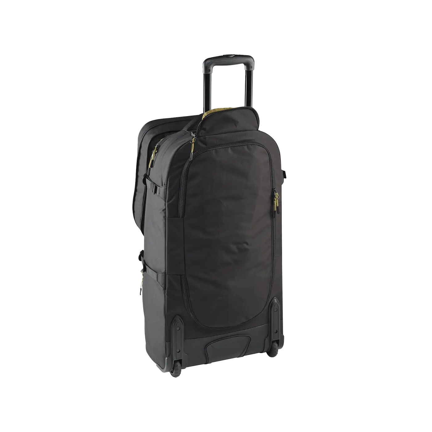 - A Hybrid 80L wheel travel backpack with a concealable harness system and detachable tablet ready daypack